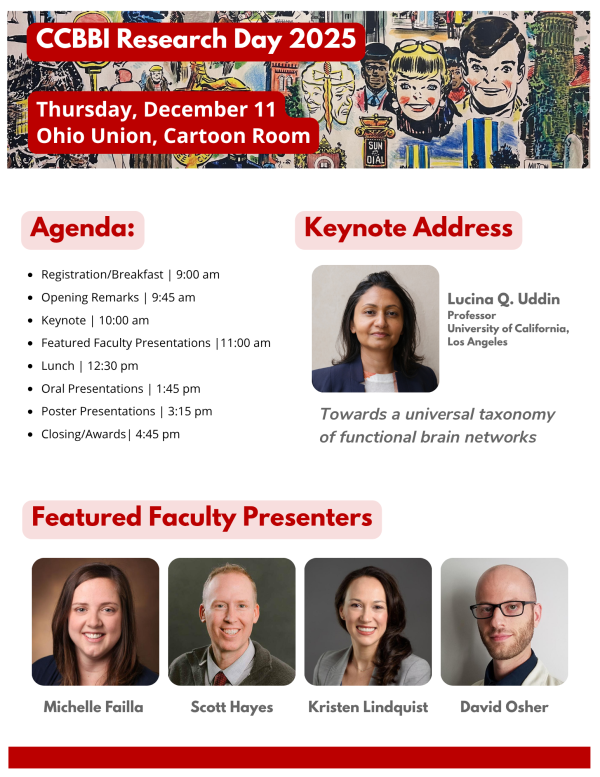 Research Day is a celebration of the innovative research conducted at CCBBI, featuring presentations from CCBBI faculty, staff, and trainees. Join us for an engaging day of science and community.